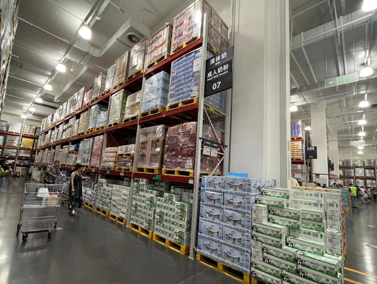 (山姆天河店液体奶货架)